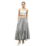 Yıldız nakışlarıyla süslenen bu tafta etek, feminen siluetiyle göz kamaştırır. Özel günler ve stil sahibi görünümler için etkileyici bir parça.