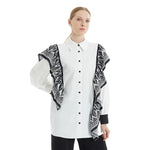 Şal yaka detayıyla zarif bir dokunuş kazanan bu fırfırlı gömlek, şık geçişler için dolabınızın favorisi.