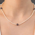 Pearlora ustalarının incelikle dizdiği beyaz incilerin saf ışıltısı arasına serpiştirilen siyah inciler, çarpıcı bir kontrast yaratır. Bu dengeli ve minimalist tasarım, hem klasik hem de modern stillerle mükemmel uyum sağlayarak zarif ama özgün bir duruş sergilemenizi sağlar.