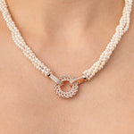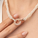 Pearlora ustalarının incelikle ördüğü bu kolye, sadece bir aksesuar değil; kalpten kalbe kurulan o özel ve güçlü bağı simgeler. Doğal incilerin saf zarafeti ile buluşan ışıltılı roz altın dokunuşu, her bakışı üzerine çeker ve girdiğiniz her ortamda fark yaratır.