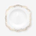 Asil Tasarım: Beyaz zemin üzerine işlenmiş gold (altın) detaylar ve süslemeler, bu çukur tabağa üst düzey bir zarafet katıyor. Bu tasarım, kraliyet şıklığını sofranıza taşıyarak sadeliğin yanında kendine hayran bırakacak muhteşem sunumlara imza atmanızı sağlar.