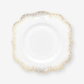 Muhteşem Sunumlar: 23,5 cm çapıyla kahvaltı, brunch veya ara öğün atıştırmalıkları için ideal boyuttadır. Beyaz ve altın rengi süslemelerin zarafetinden ilham alan bu tabak, partilerin dinamikliğini ve ahengini yansıtacak sunumlar yapmanızı sağlar.