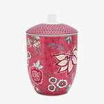 Ticsbrands Güvencesiyle: Pip Studio Flower Festival Kırmızı Porselen Kapaklı Küp / Kavanoz (1500 ml)