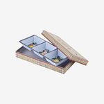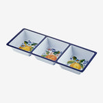 Limoncello melamin üç bölmeli çerezlik mavi zemin üzerine limon motifleriyle sofralarınıza şıklık katıyor.
