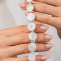 This bracelet, by Pearlora and offered with the Ticsbrands guarantee, is a tribute to nature's perfect symmetry . Flat pearls , each with a unique shape, come to life on your wrist in a simple, modern design.